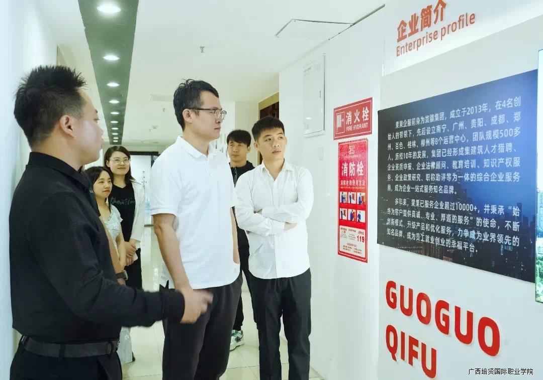 为深化校企合作、拓宽学生就业渠道,4月24日,广西培贤国际职业技术学院副校长许家瑞率就业处副处长农光磊、就业干事郑如锦、新媒体中心主任宁永尧一行赴广西果果企业服务有限公司(以下简称“果果企服”)开展访企拓岗专项活动,共商人才培养与就业服务合作新模式。
